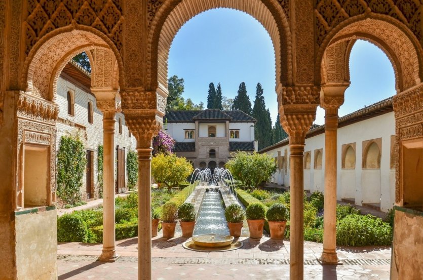 Otro lugar destacado es el Generalife, que podrá visitar en el marco de una visita guiada. Se trata de los jardines y la villa de verano de los antiguos reyes nazaríes. Aquí encontrará exuberantes jardines con fuentes y cascadas, así como un encantador paseo entre árboles y flores que le transportará a otra época.